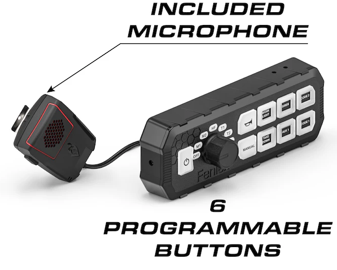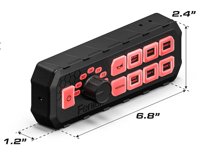 The Siren Typhoon Full function boasts a 100W siren and integrated controller that produces clear, powerful sound. Perfect for emergency response and pursuit vehicles, this top-of-the-line product offers six programmable backlit buttons and a variety of customizable police and fire tones. The included PA/microphone is a convenient attached accessory, and the controller features a rotary dial for siren tones and added features. The compact amplifier measures 7.4" x 4.8" x 2.5", while the full-function controller comes in at 6.8" x 2.4" x 1.2". With a 12 VDC input voltage and a maximum current draw of 20 A, this product packs a powerful punch. Plus, it comes with a 15 ft RJ45 cable, legend sheet, and all necessary mounting hardware. Get ready for a highly-functional and customizable experience with six programmable light outputs, three standard and three programmable siren